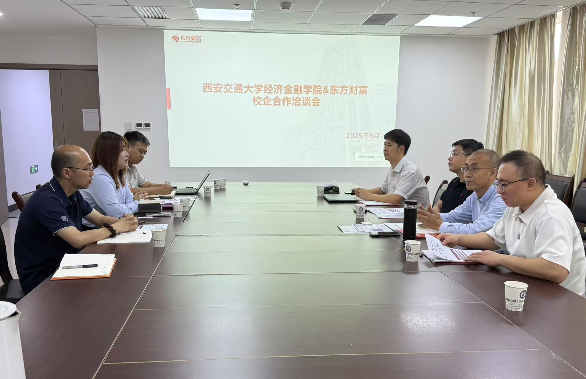 ,东方财富人工智能研究院专家张恺、市场部高校西北地区负责人李博伟、席倩倩一同到访。学院副院长沈灏、实验室主任李淑彪、金融科技系支部书记董志龙、教师李岩参加座谈。