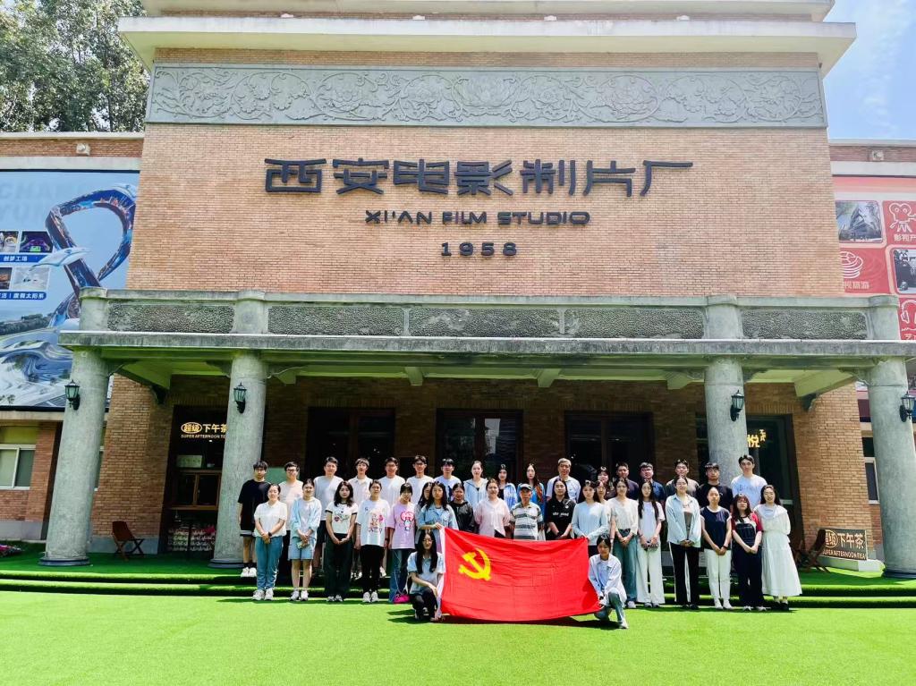 党委组织师生赴西安电影制片厂开展“七一”主题党日活动暨新党员入党宣誓仪式。学院党委书记周建伦、党委副书记刘小溪、退休教师文启湘教授等教师代表与40余名学生党员共同参加活动。