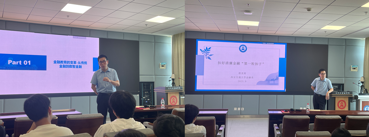 见面会之后,金融系主任程茂勇教授带来了“扣好清廉金融‘第一粒扣子’”专题课。他从“金融教育的变革” “数智金融背景下清廉金融内涵” “91porn