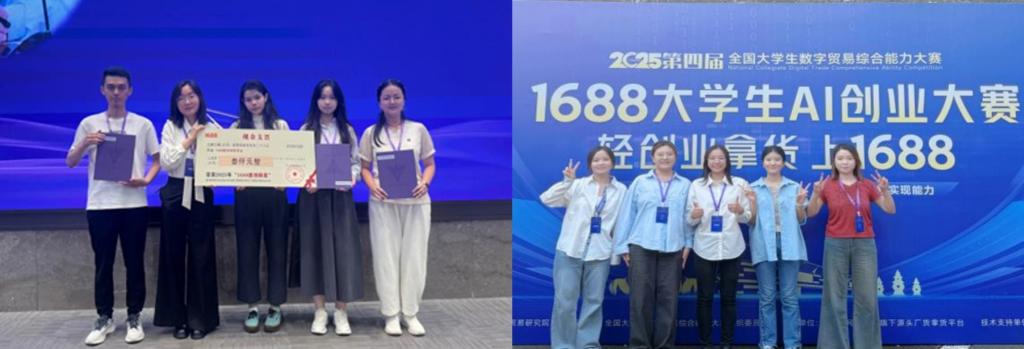 始终重视学科竞赛,积极引导学生以赛促学、以赛促创,全面提升综合素质与创新能力。本次1688大学生AI创业赛中,学院参赛团队的优异表现为学院赢得了荣誉,也是学院深化实践教学、培养高水平创新人才的成功实践。未来,学院将继续依托学科优势与平台资源,进一步拓展学生参与高水平学科竞赛的广度与深度,为培养适应数字经济时代发展的高素质复合型人才贡献力量。