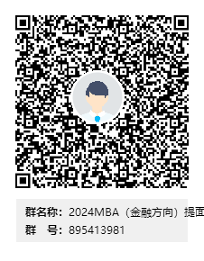 请MBA(金融方向)考生加入2024年MBA(金融方向)提前批第二批面试群(QQ群号:895413981),入群申请备注为:姓名。