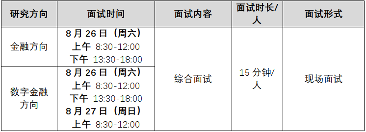2024年MBA(金融方向、数字金融方向)提前批第二批面试将于2023年8月26日至27日举行。现将具体安排通知如下: