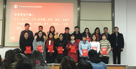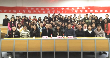 2017年度学生工作总结表彰大会在财经东配二举行。院党委书记宋丽颖、副书记周建伦、团工委书记王平老师、院各社团负责人以及受表彰的同学参加会议。