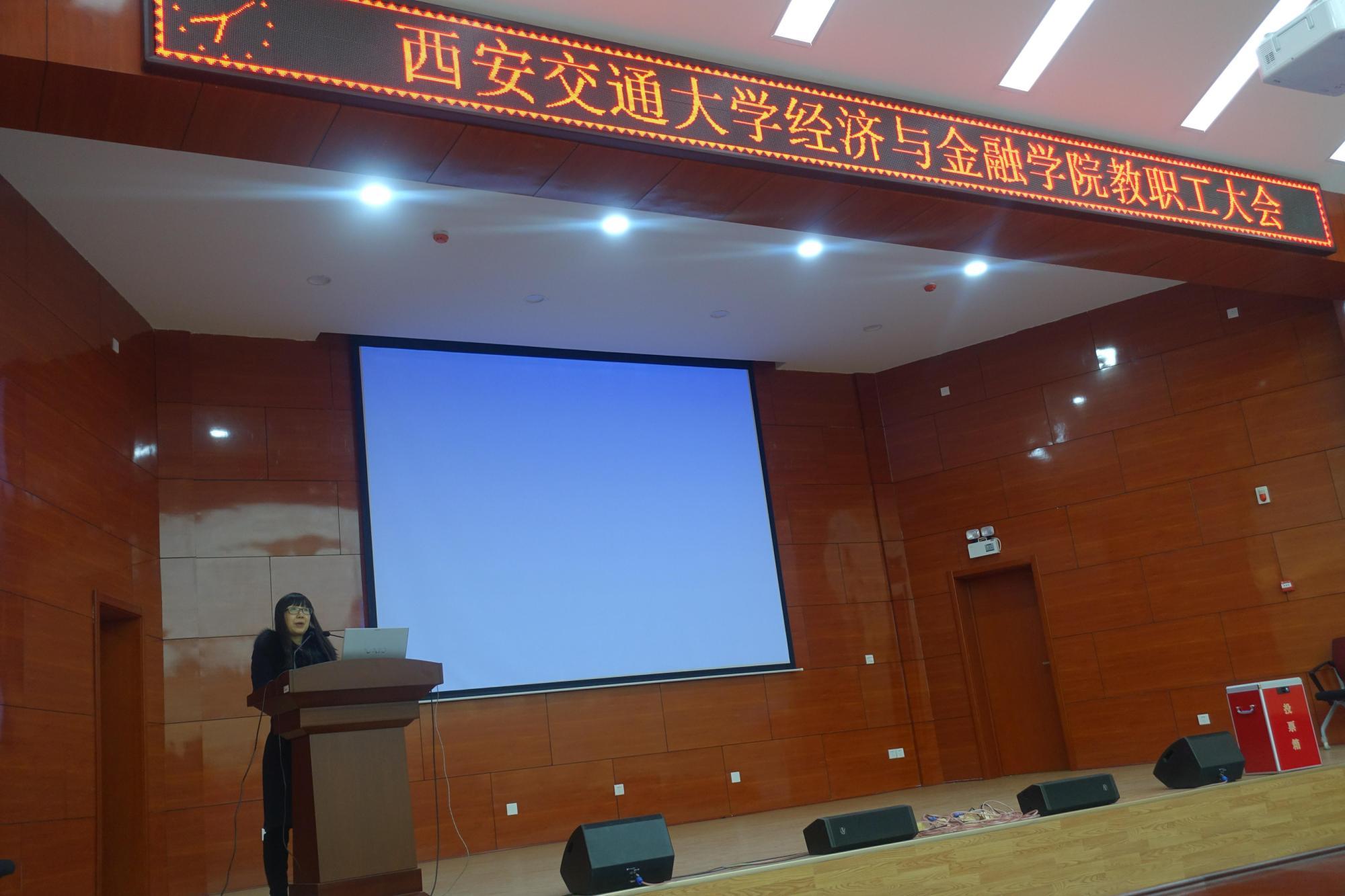 孙早院长首先向大家传达了王树国校长“爱国奋斗,无怨无悔,做好西迁精神新传人;时不我待,只争朝夕,开创学校发展新局面”的主题报告精神。孙早院长按照“2017年学校各项工作、学校2018年重点工作与存在问题分析”三个部分向全院教职工详细解读了王校长的报告。孙早院长进一步结合教育部第四轮学科评估中91porn