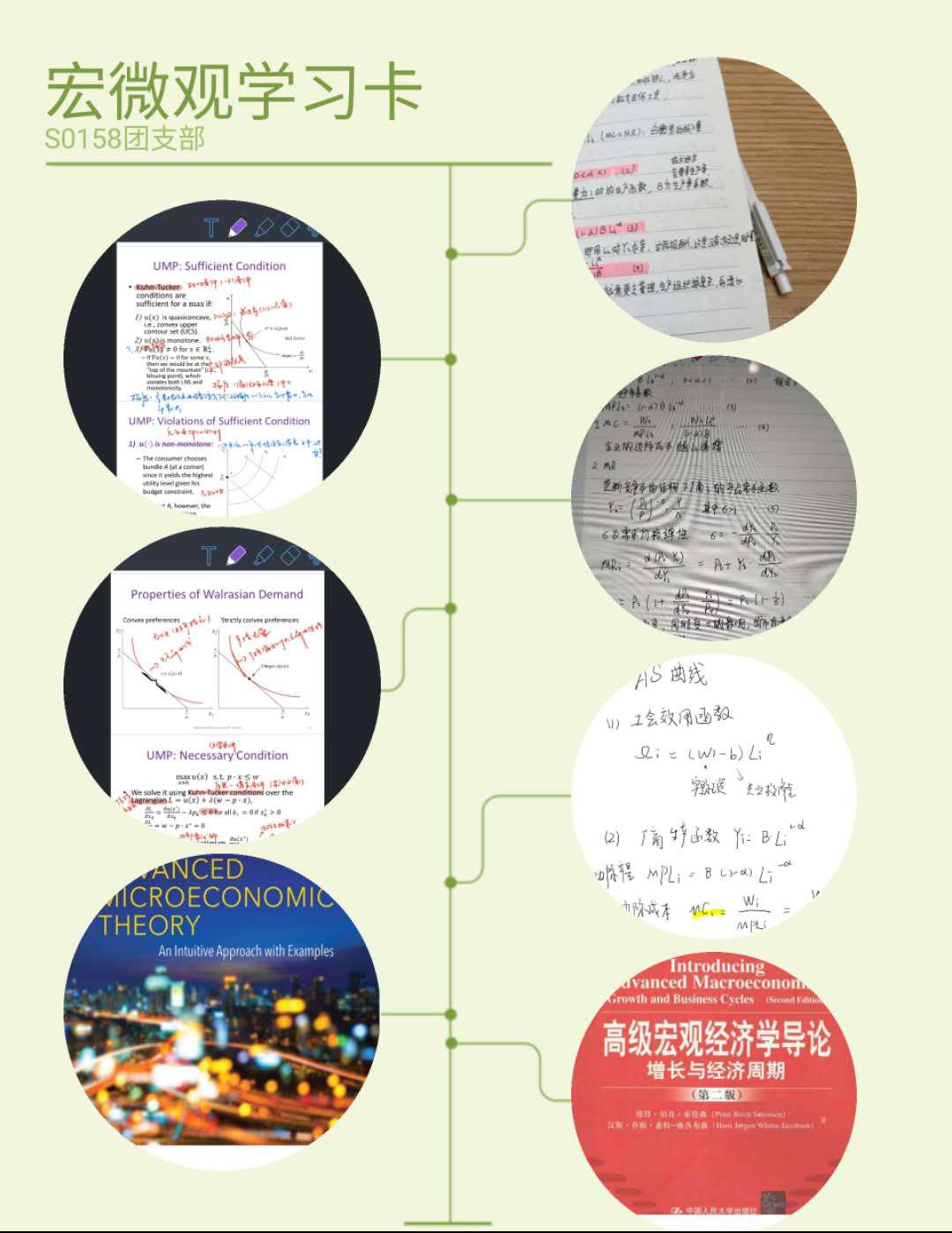 高宏高微课程是我们S0158学硕班级在研一上学期的重头戏,根据往届学长学姐的经验,这两门课也是期末最容易挂科的两门课,而导致高宏高微成绩差的重要原因就是日常投入时间不够。我们通过组织大家进行学习打卡,相互监督,并组织了线下的小组学习活动,共同攻克高宏高微课程的难关,并以“期末零挂科”为目标在主题团日活动结束后将此打卡继续进行下去。