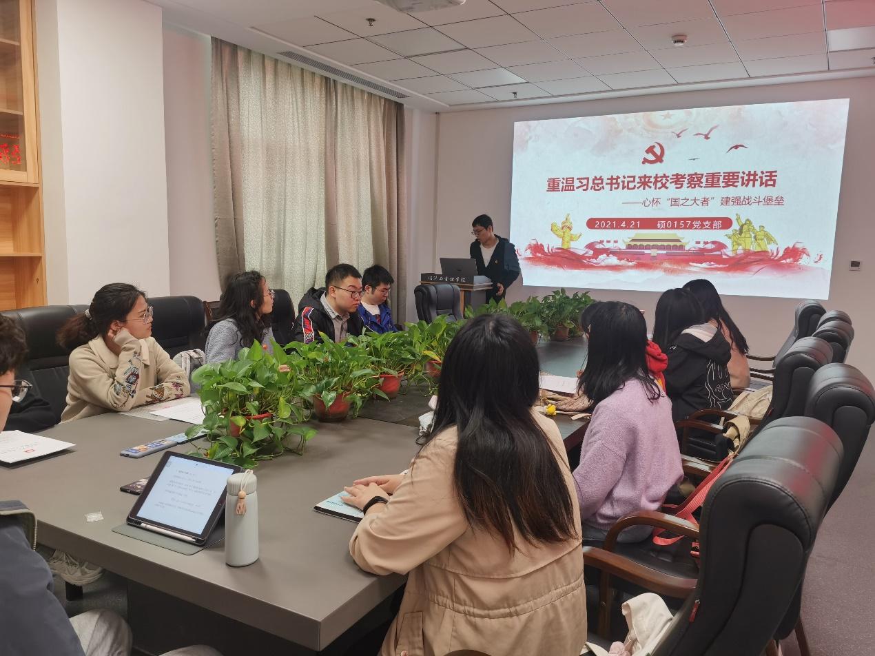 硕0157党支部开展以“重温习近平总书记来校考察重要讲话,心怀‘国之大者’建强战斗堡垒”为主题的党日活动。党员同志们认真学习和领悟讲话精神,表明了不负期望,迎难而上的决心。