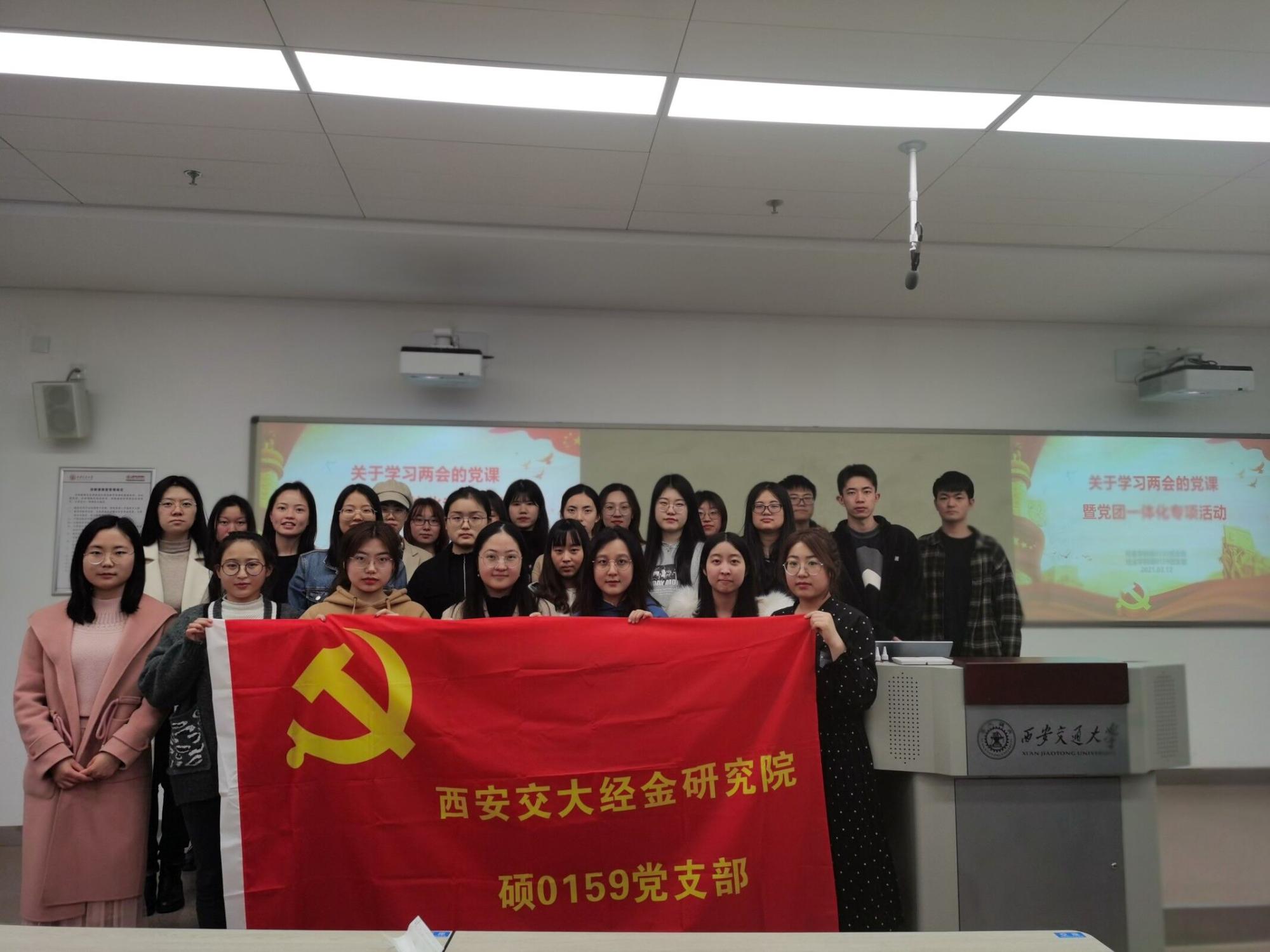 3月12日下午,硕0159党支部联合0159团支部开展了题为“认真学习领会‘两会’会议精神”主题党课学习。支部全体党员及团支部全体团员参加了学习,会议由党支部组织委员周薇主持。