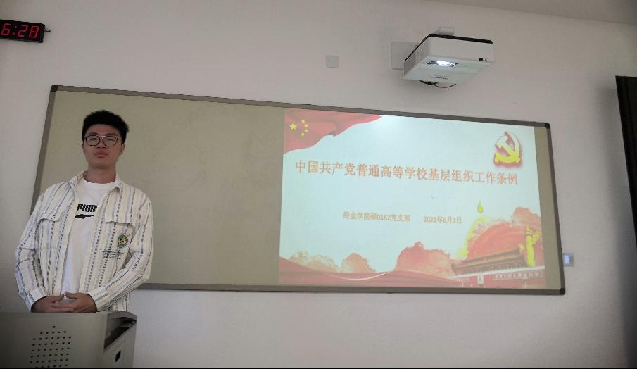 为深入贯彻落实新时代党的建设总要求和新时代党的组织路线,坚持和加强党对普通高等学校的全面领导,积极响应党关于加强和改进高校党的建设,扎根中国大地办好中国特色社会主义大学的号召,6月3日,硕0162党支部全体成员在党支部书记刘帅同志的带领下,集体学习了《中国共产党普通高等学校基层组织工作条例》的有关内容。