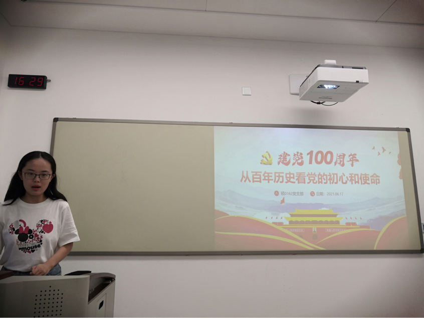 习近平总书记在中共中央政治局“牢记初心使命,推进自我革命”第十五次学习时强调,我们党作为百年大党,如何永葆先进性和纯洁性、永葆青春活力,如何永远得到人民拥护和支持,如何实现长期执政,是我们必须回答好、解决好的一个根本性问题。我们党要求全党同志不忘初心、牢记使命,就是要提醒全党同志,党的初心和使命是党的性质宗旨、理想信念、奋斗目标的集中体现,越是长期执政,越不能忘记党的初心使命,越不能丧失自我革命精神。因此,为了再次学习感悟党的初心和使命,硕0162党支部于6月17日下午开展了“从党的百年历史看党的初心和使命专题组织生活会。