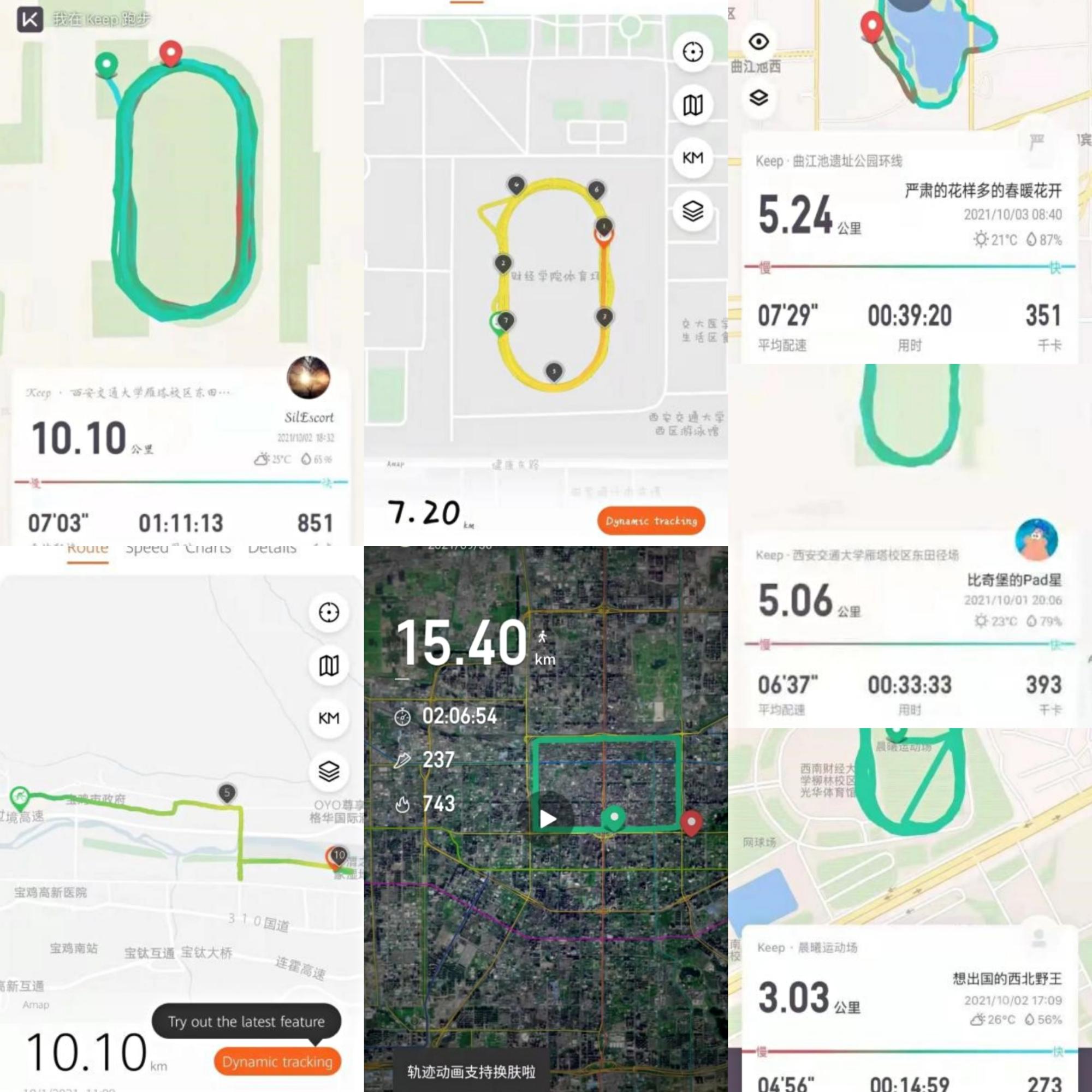 张悦、仝明皓、高昕凯等10多名同学通过跑步的形式响应本次活动,他们或是在校园操场、或是在曲江池等地标迈起脚步,践行低碳行动,部分同学跑出了7.2km、10.1km等数字,为祖国庆生。曾磊、崔超、孙圣仪等同学则采取骑行的方式,在西安古城墙上骑行一圈,在呼吸之间感受古城脉搏。