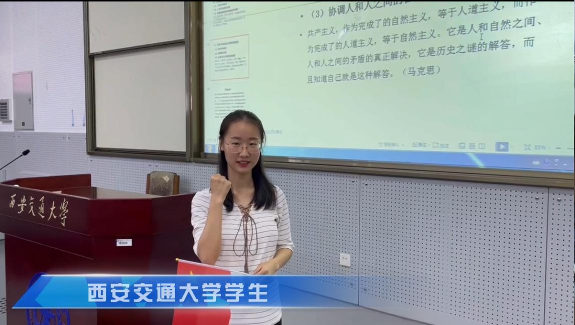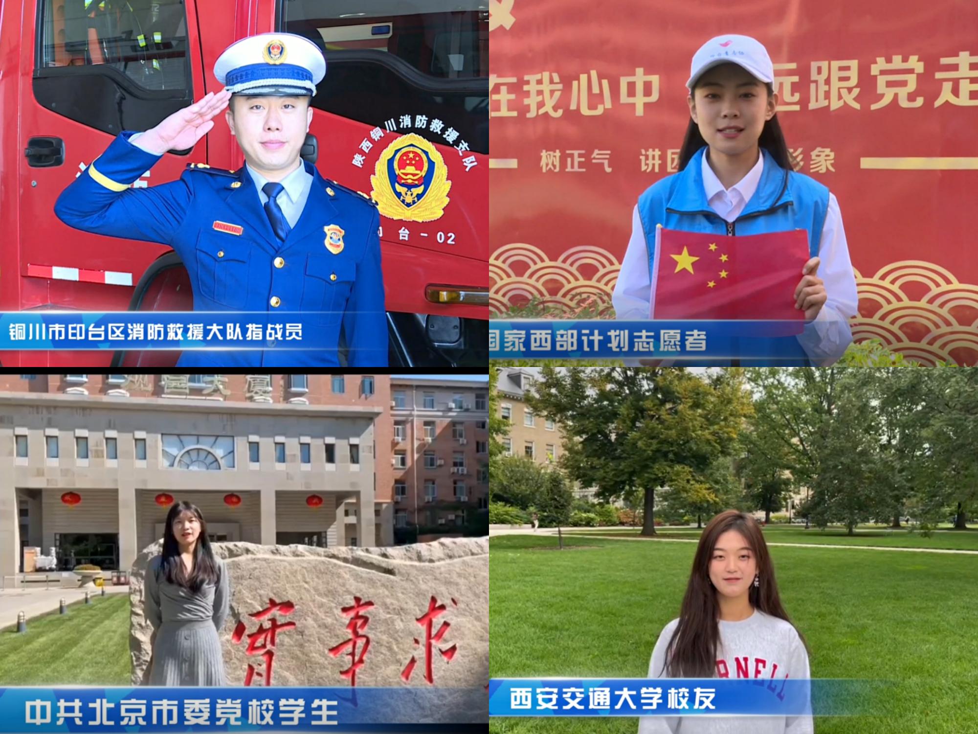 硕1154班开展以“强国有我,请党放心”为主题的国庆祝福视频拍摄活动。同学们走出校园,分别前往钟楼、大雁塔、小雁塔、大唐不夜城陕西历史博物馆等西安市著名地标进行宣讲祝福,感受浓厚的节日氛围,并邀请路人一同向祖国献祝福。现就读于海外的交大学子、交大老师、国际友人、中学生、消防战士、抗疫一线工作者等也应邀为祖国送上祝福。“请党放心,强国有我”、“白衣执甲,逆势而行”等话语铿锵有力,直抵人心。