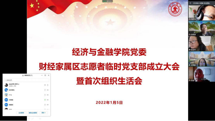 财经家属区志愿者临时党支部,下设三个临时党支部小组:第一临时党支部小组(南家属院),第二临时党支部小组(西家属院),第三临时党支部小组(东家属院)。财经家属区志愿者临时党支部以实际行动发挥先锋模范作用,组织各方力量全面做好家属区疫情防控工作,主要工作是加强疫情防控管理,认真落实家属区出入管理、排查管控、日常管理、服务保障等工作,做到核酸检测应检尽检、自觉遵守封控管理、生活保障服务到位,确保各项防控措施落到实处,构筑群防群治的严密防线。临时党支部成员挺身而出,舍小家顾大家,用实际行动温暖着整个小区,在财经家属区涌现出很多温暖有爱、互帮互助的感人故事。