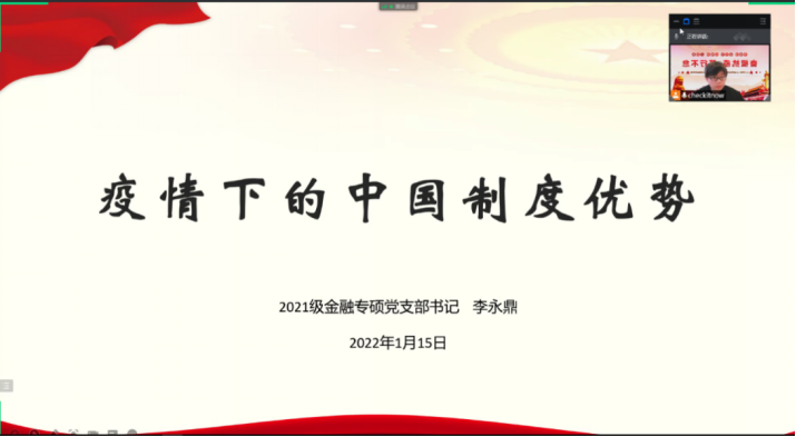为树立必胜信心,讲好战疫故事,切实发挥党员先锋模范作用,2022年1月15日,人居学院2020级学硕党支部和91porn