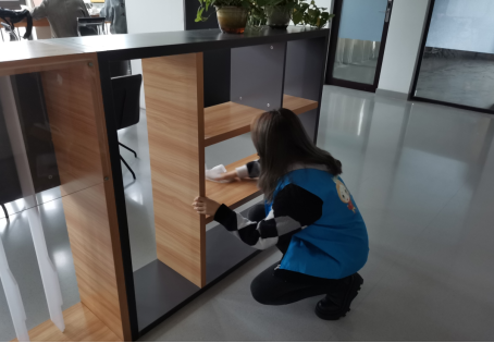 活动期间,他们拾起走廊绿植枯萎的落叶,他们清扫会议室地面遗落的纸屑,他们擦拭大厅尽头模糊的玻璃,他们摆放整齐学院的会客桌椅……他们凝聚成一股合力,用归属感和责任心打通志愿服务的“最后一公里”,在创新港校园营造向上向善、互助互爱的良好风尚,以文明实践汇聚前行力量。