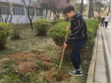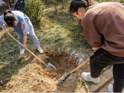 此次活动分为麦冬种植、小叶黄杨移栽、杂树移除、卫生整理等几个环节。在植树活动现场大家分工协作,齐心协力栽种树苗,挥锨培土、浇水灌溉、扶苗踩实,现场呈现出一片配合默契、热火朝天的繁忙景象。医学部师生负责财经篮球场南侧和道沿以上的麦冬种植,保卫处10人以及葆力物业2人负责招待所西侧道沿以上南北方向的麦冬种植,学生权益部、研究生代表等15名同学负责药学楼北侧7棵小叶黄杨的移栽,此次栽种的都是适应西北地区气候的植物。栽种活动完成后,雁塔中心20余人负责药学楼路北的杂树移除、卫生清理和温室顶棚处理等工作。