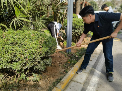 硕1156党支部和医学部机关党支部、保卫处第二党支部、学生权益部、葆力物业、雁塔中心党支部联合举办主题为“贡献力量,奉献绿色”的种树植绿及爱国卫生活动。
