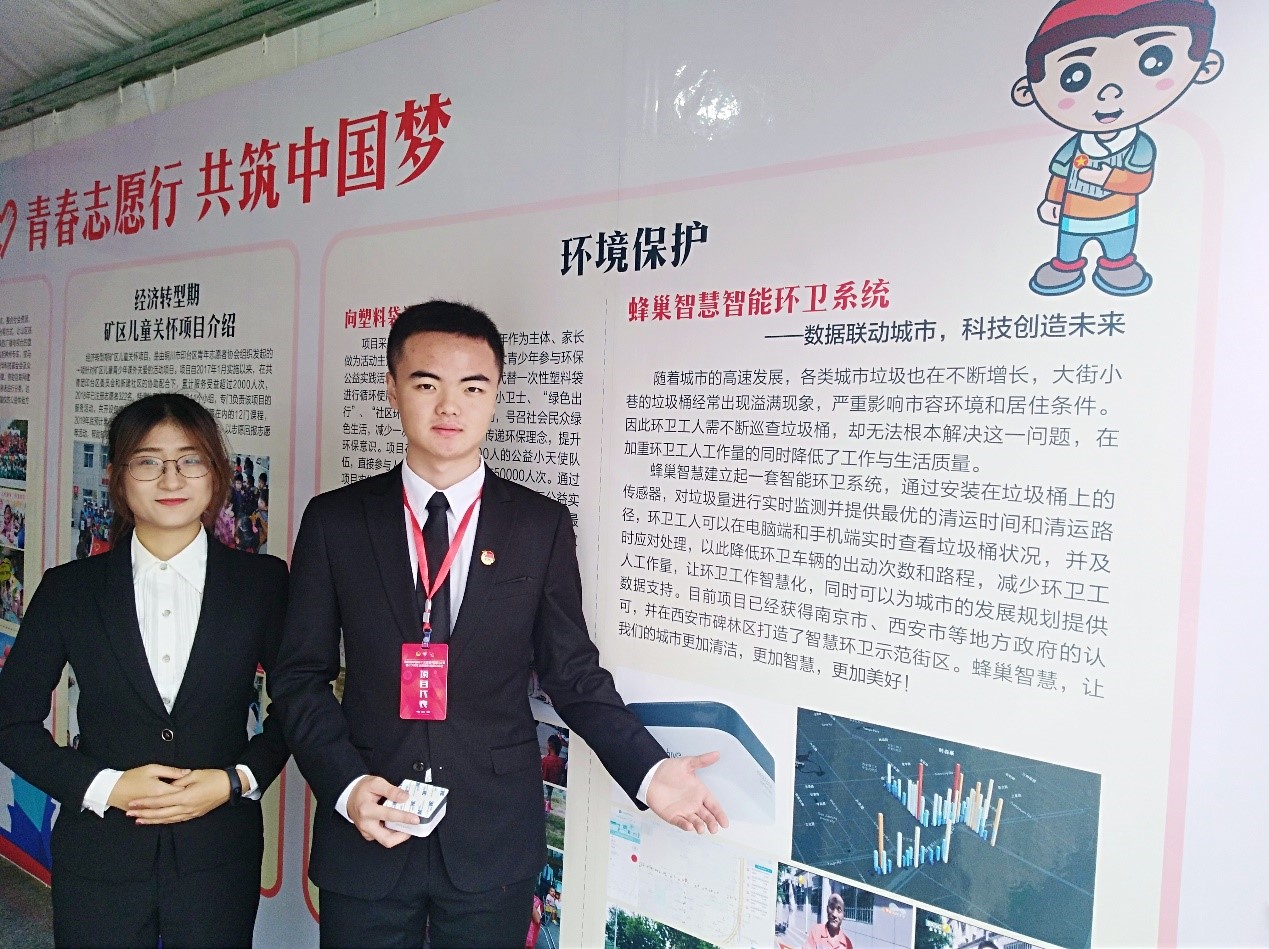 金融工程61班袁振颖同学和金融61班朱蕊同学是“蜂巢智慧”团队成员之一。此次陕西省共有22个项目进入全国终评,3个项目获得金奖,“蜂巢智慧”是唯一一个夺得金奖的高校项目。