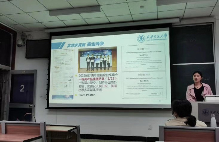 2019年10月29日,第三期知新讲坛系列活动在财经校区西配楼102举行。经济93班班主任兰蓉副教授主持 ,金融工程专业2016级袁振颖(保研至上海交通大学高级金融学院)、张博(保研至上海交通大学安泰经管学院),丁宇昂(保研至南京大学工程管理学院)以“商科保研、实习、竞赛”为主题与大一大二学生分享了自己的经验和建议。