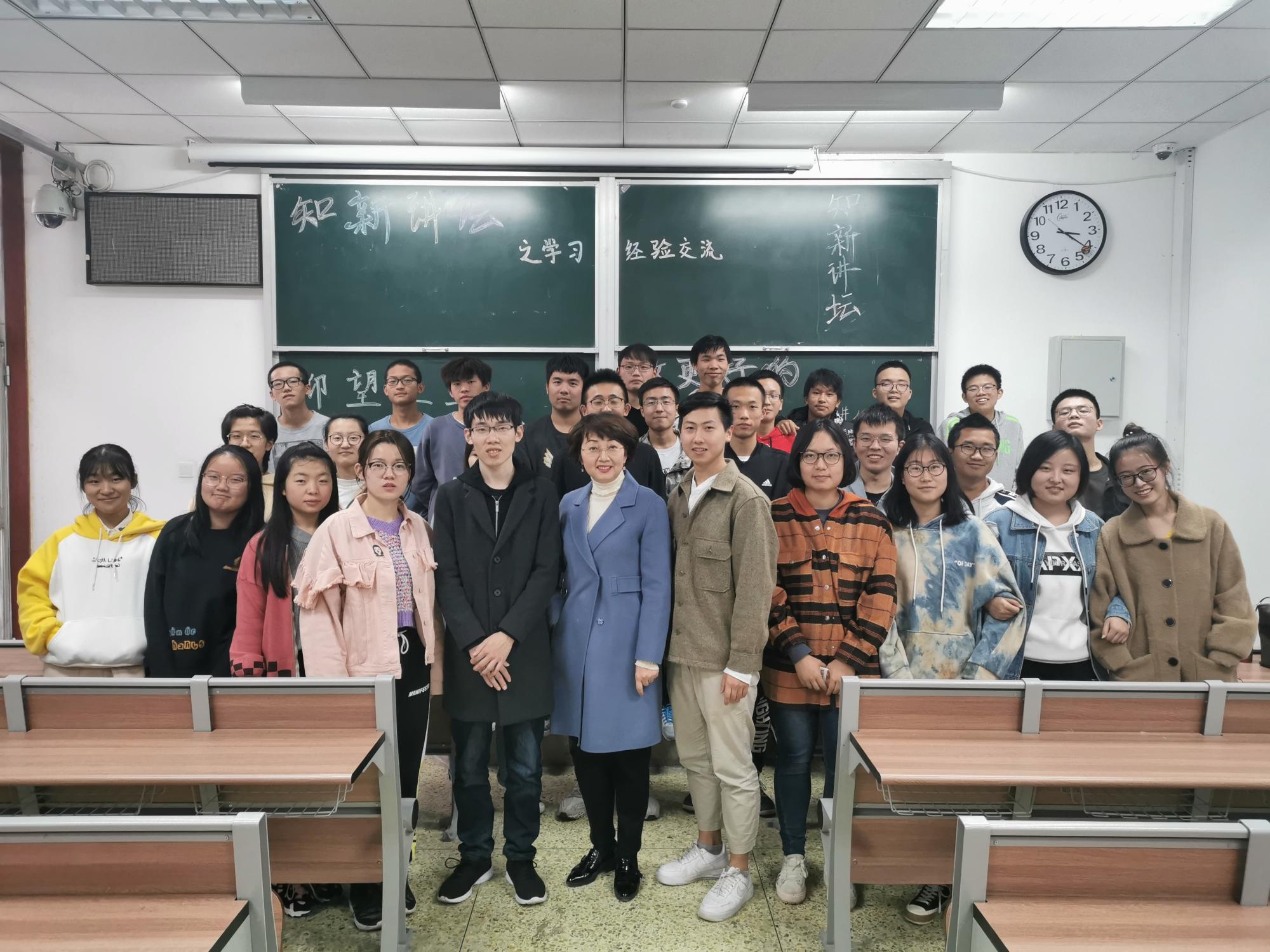 2019年11月4日,第四期“知新讲坛”之学习经验交流会如期在西配楼102举行。经济94班班主任贾小玫副教授主持,2016级经济学专业陈杨(保研北京大学软件与微电子学院)和周泽昊(保研91porn