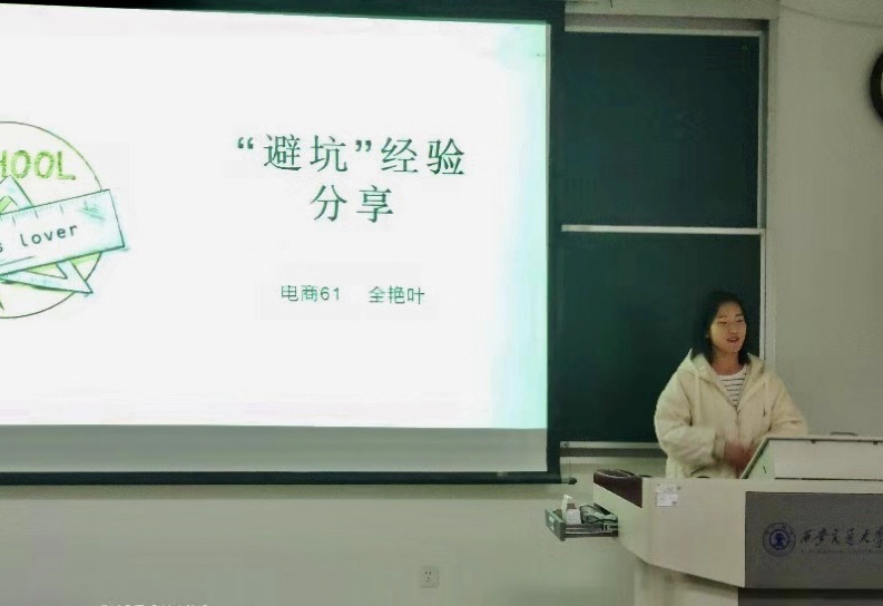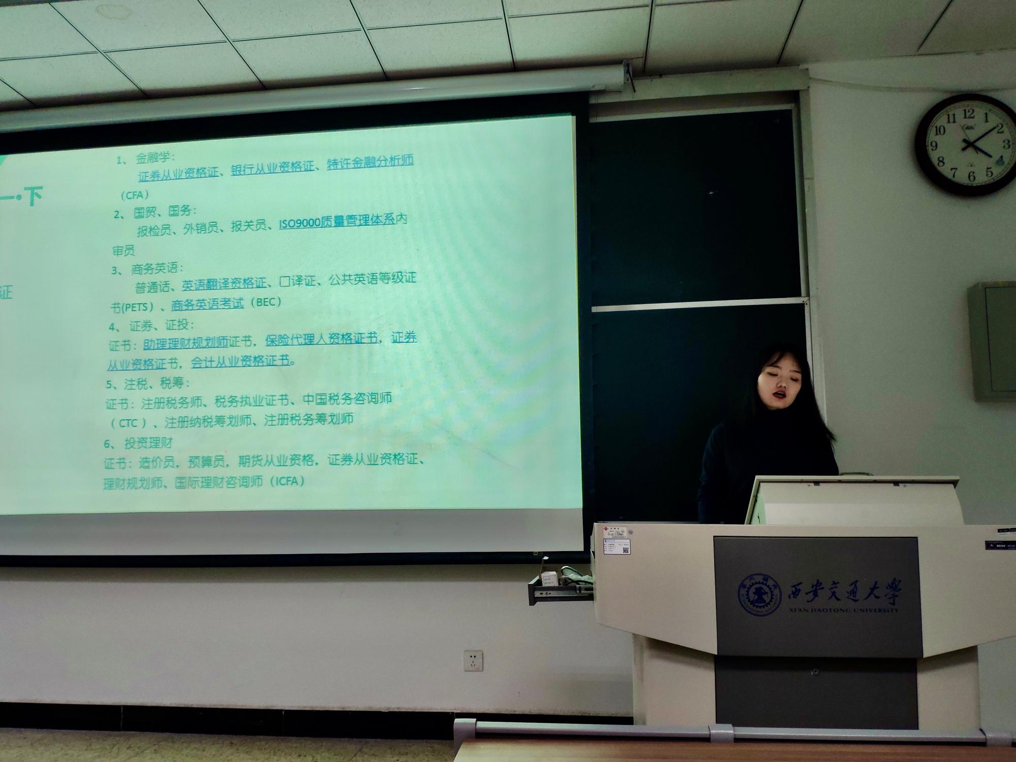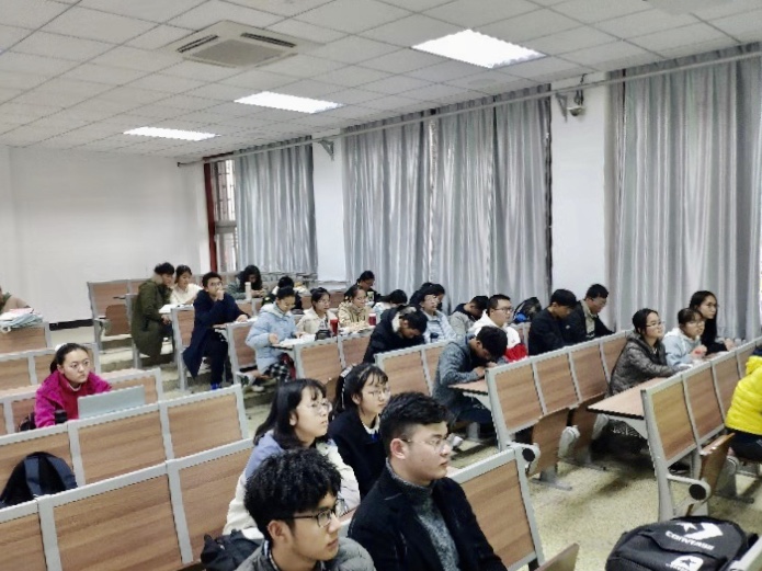 2019年11月26日下午,第七期知新讲坛系列活动在西配102举行。经济86班班主任徐晓瑜老师主持, 2016级电子商务专业余昕杰(保研中国科学院大学经济与管理学院)与全艳叶(保研西安交大91porn
