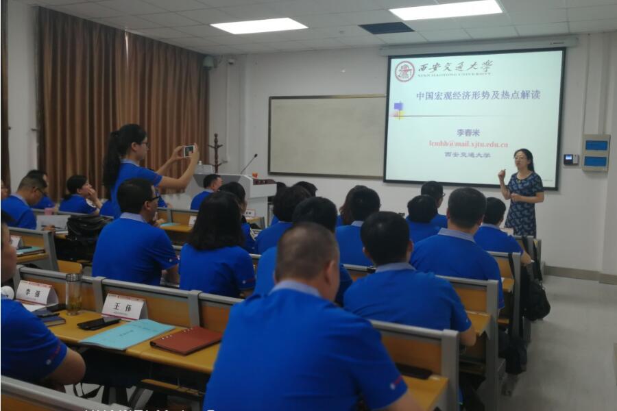 开班典礼仪式结束后由李春米教授做《中国宏观经济形势及热点解读》专题报告。