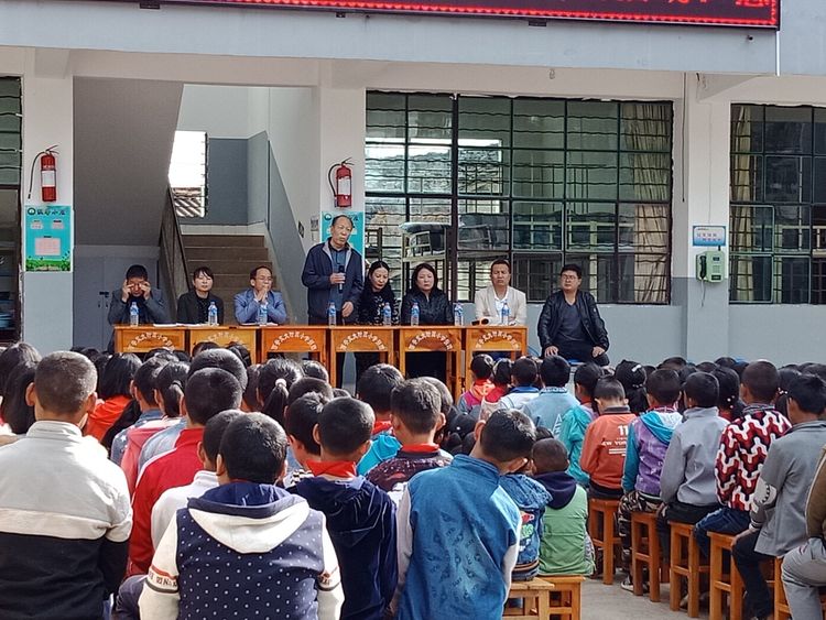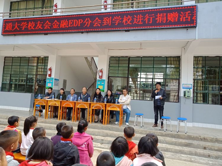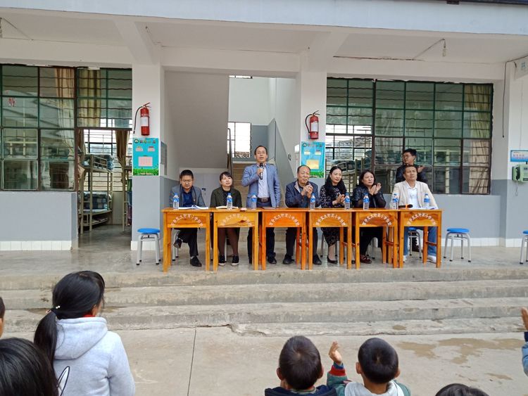 金融EDP校友会秘书长孙尚红主持,保山市施甸县人民政府副县长杨峰,保山市施甸县教育局副局长何红梅,姚关中心学校校长闫斌,雷打树小学校长杨朝龙,91porn