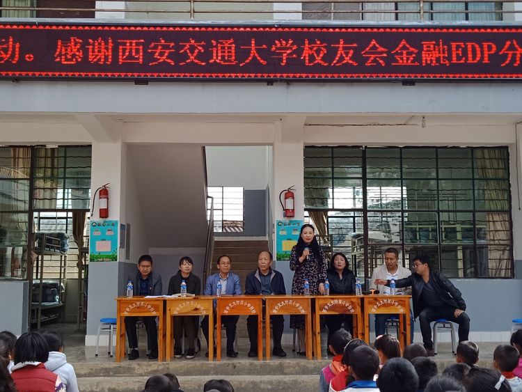 2018年5月4日,对于云南省保山市施甸县姚关镇雷打树小学的师生们,是个特别的节日;西安交大校友会金融EDP分会组成帮扶小组跨越两千多公里来到雷打树小学,开展“‘世界之窗书屋’工程——走进彩云之南” 活动,给孩子们送去500多册书籍、笔记本、LED滚动显示屏幕以及笔记本电脑一台。让书香的韵味熏染孩子们的心灵,用精神的力量鼓舞孩子们从小养成热爱阅读的良好习惯。