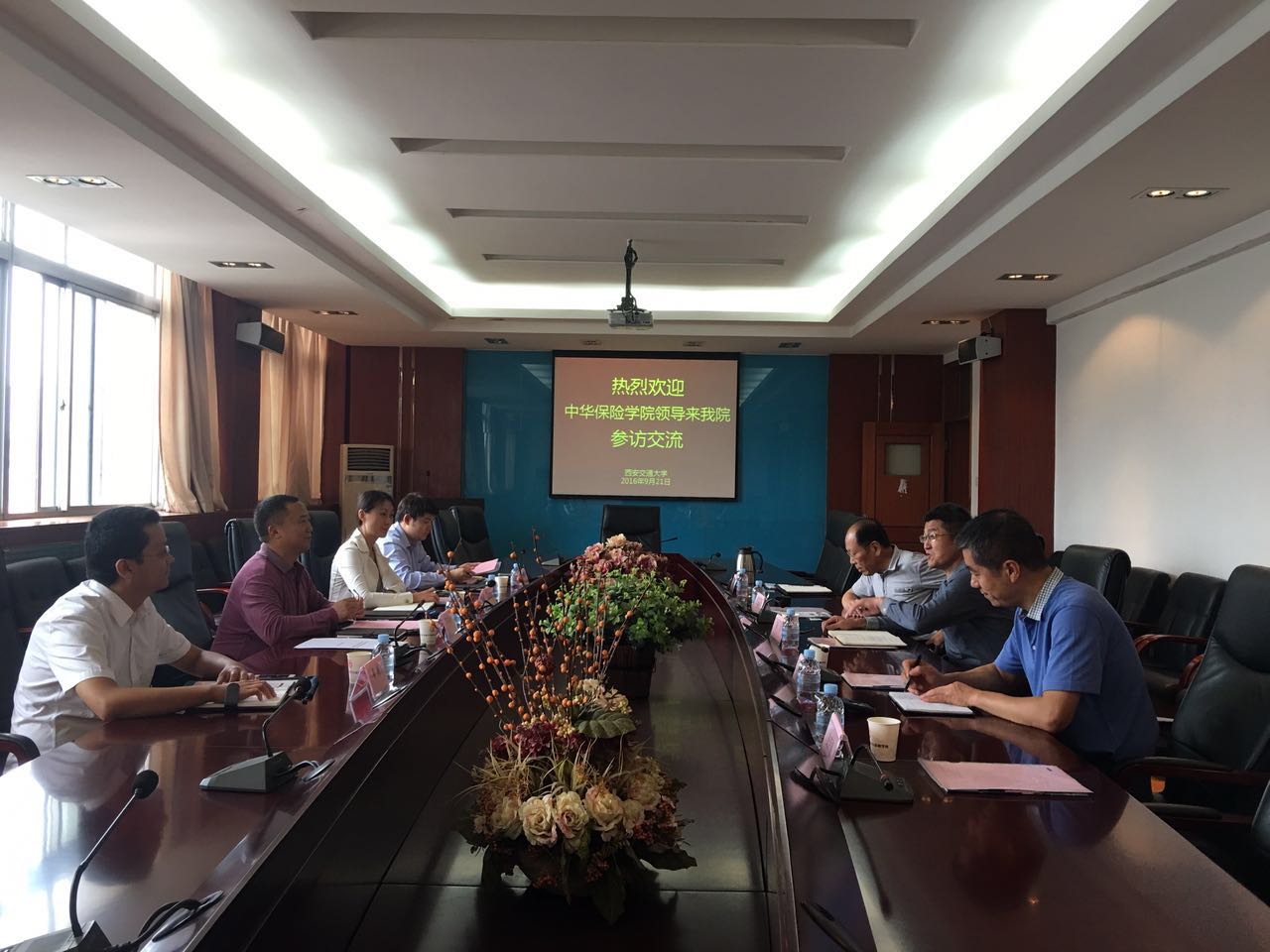 中华联合保险培训部牟德胜总经理一行与我院孙早院长、周建伦副书记、王凌云主任商谈校企合作事宜