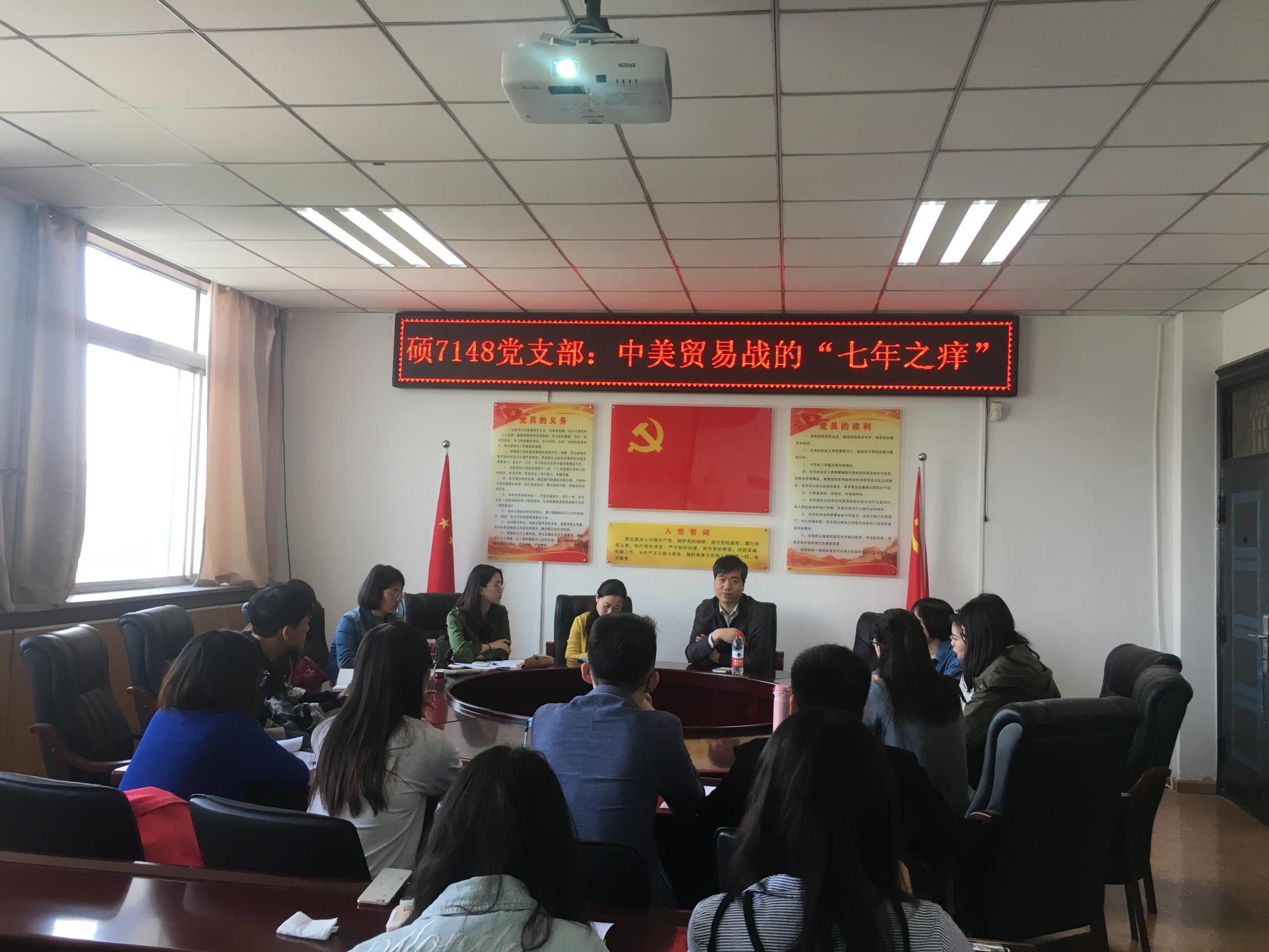 3月28日上午,国际商务专业班级7148党支部在财经主楼708举办了“中美贸易战-七年之痒”的讨论活动。本次讨论会特邀学院党委副书记周建伦老师、国际经济与贸易系闫奕荣副教授参加,支部成员及班级其他同学15人参加了本次讨论。