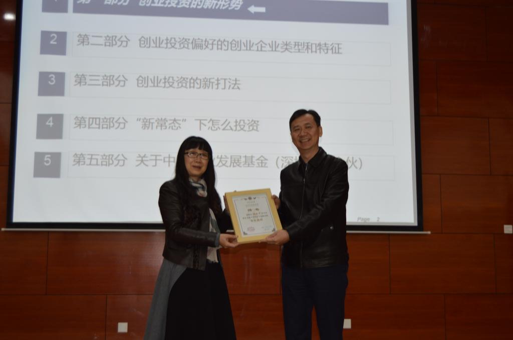 施安平博士主要从五个方面向大家介绍了他在新常态下对创业投资的思考。首先,他用详细丰富的案例,结合中国当下的新形势,为大家介绍并详细剖析了“创业投资”的定义,其深厚的理论功底与丰富的经验迅速吸引了大家的注意力,让听众们了解到创业投资的深刻内涵与国内创业投资的现状。在谈到风险投资的增值服务时,施安平博士运用了潍柴动力产业链发展和金立手机与电视购物频道联手的实例为我们讲述了资源纵向整合与横向整合。施安平博士说企业要做大做强需要两条腿,一条是主业做实,而另一条是开展资本运作,主业发展与资本运作缺一不可。
