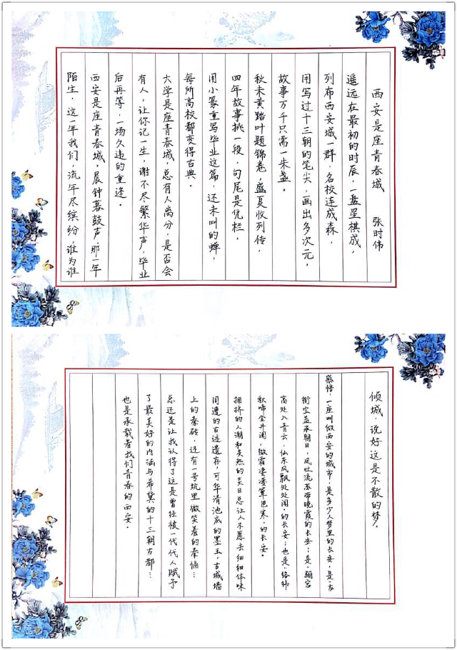 研究生会在西校区开展了“见字如面”书法比赛活动,并取得圆满成功。活动以“分享一段感动你我的文字”为主题,为同学们提供了一次精神交流的机会。通过一周时间的作品征集,本次活动收到了许多的优秀作品,同学们或摘抄有力量的文字,分享自己的感悟;或大笔一挥,展现自己良好的书法功底,活动最终通过微信线上投票和专业老师打分两个环节,评选出获奖作品。