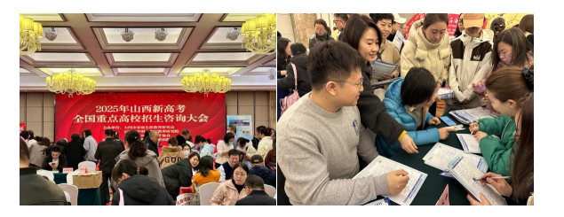 3月30日,招生团队出席由大同市教育局主办的"2025全国重点高校招生咨询大会"。面对新高考改革背景下焦虑与期待交织的家长群体,两位教师通过政策解读展位、专题讲座和一对一咨询等形式,为200余组家庭提供精准指导。现场开展考生模考成绩分析、全省位次预测、优势专业匹配等专项服务,登记了百余名意向考生家长的联系方式,建立起长效沟通机制。