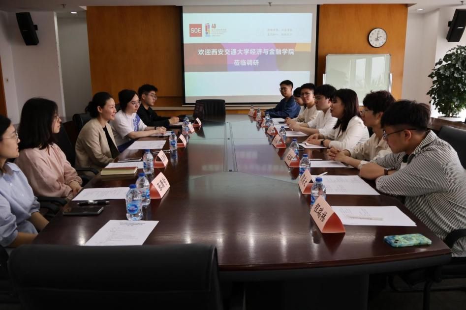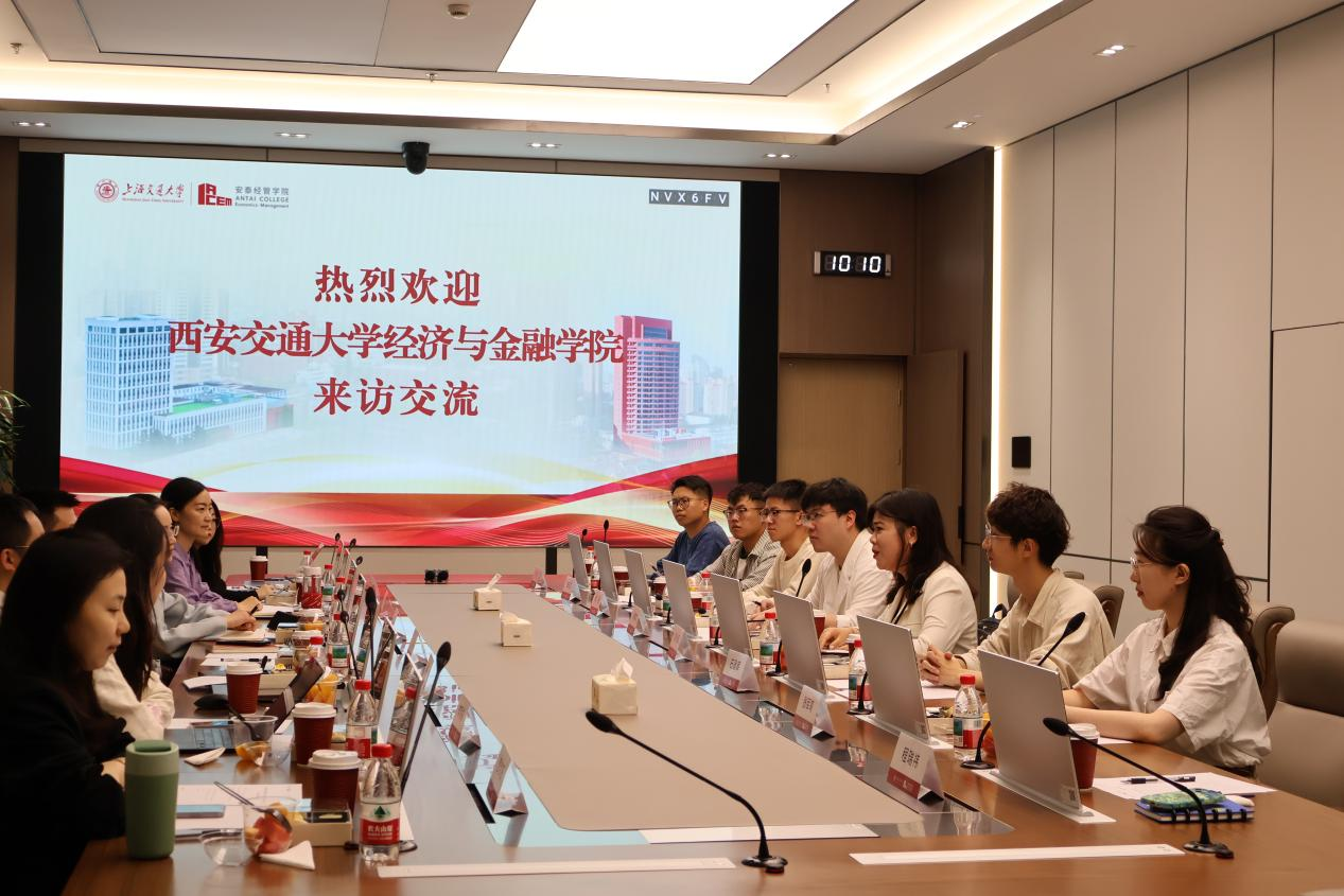研学团队首站走进上海交通大学安泰经济与管理学院。安泰经管学院党委副书记郭非,学生工作与职业发展办公室主任王璐怡,团委书记胡眸,职业发展老师王艳丽,团委副书记李雨桐,学生骨干等参加交流。
