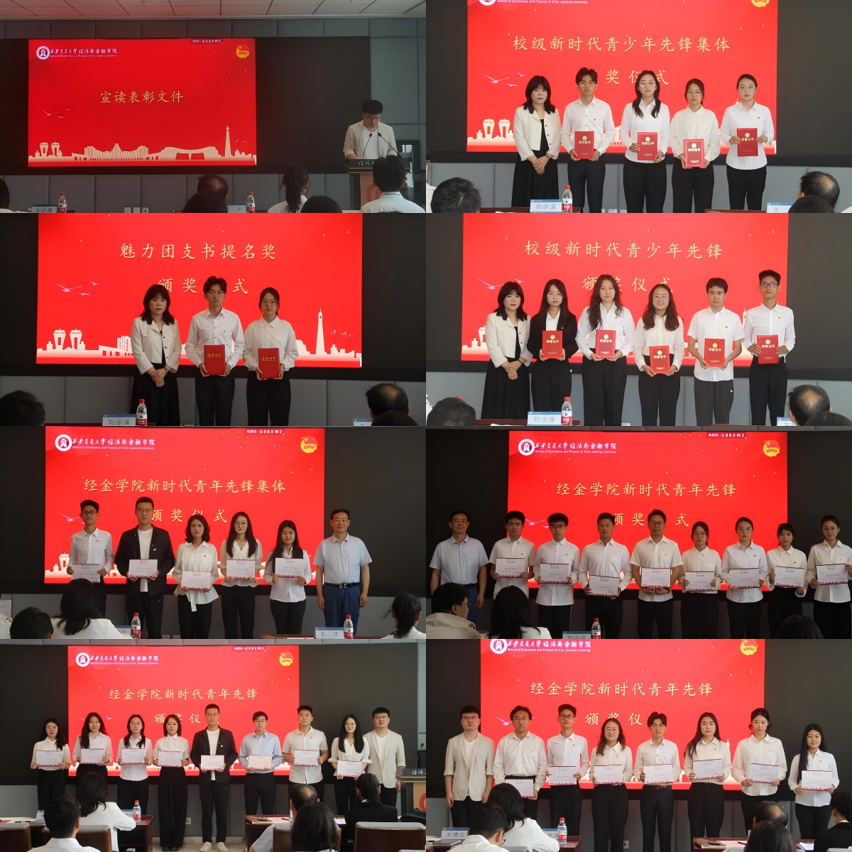 “五四”先进集体和优秀个人的决定》。经个人申报、团组织推荐、学院综合评议,并报请院党委同意,共有5个团支部获院级“新时代青年先锋集体”称号,35名同学获院级“新时代青年先锋”称号。会上还对获评校级“新时代青少年先锋集体”称号的4个团支部,获评“魅力团支书提名奖”称号的2名同学以及获评校级“新时代青少年先锋”称号的10名同学予以通报表彰。与会嘉宾分别为获奖集体和个人颁奖。