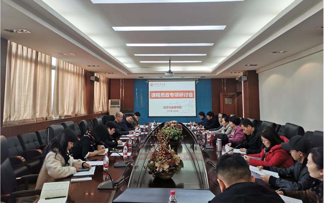 在雁塔校区财经主楼806会议室召开了研究生课程思政研讨会,学院课程思政示范课教师代表、学院各系主任、教学督导、研究生教学秘书等参会,温军副院长主持会议。
