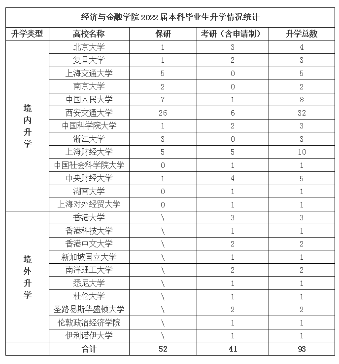 2022届本科生预计毕业223人,其中52人保研至境内知名高校,41人通过考研或申请已被境内外各大高校录取,经统计共93名本科生顺利升学至国内外知名高等学府继续攻读研究生,升学率达42%。全院教师精心育人,学生刻苦奋斗,升学捷报频传,本科升学工作硕果累累。
