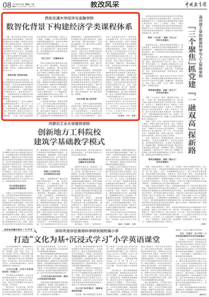 认为,推进高校经济学课程体系改革,一是要注重新技术课程的引入,做好系统设计工作;二是要增设学科交叉融合的实践应用场景,构建深度融合的学科交叉课程体系。