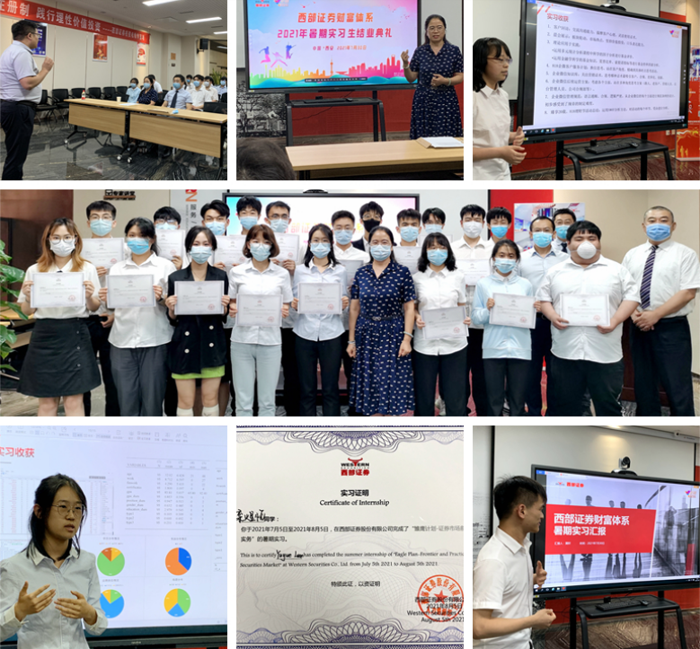 20名本科生在张慧芳老师和路维春老师的带领下赴西部证券开展了为期四周的暑期实习。