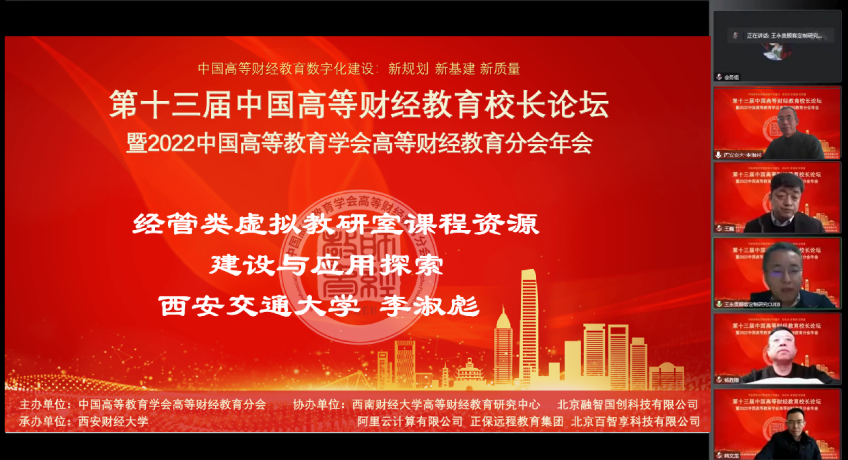 教师李淑彪副教授应邀线上出席,并在“虚拟教研室建设论坛”上做了题为《经管类虚拟教研室课程资源建设与应用探索》的主旨报告,分享了课程资源共建共享的研究成果与实践经验。