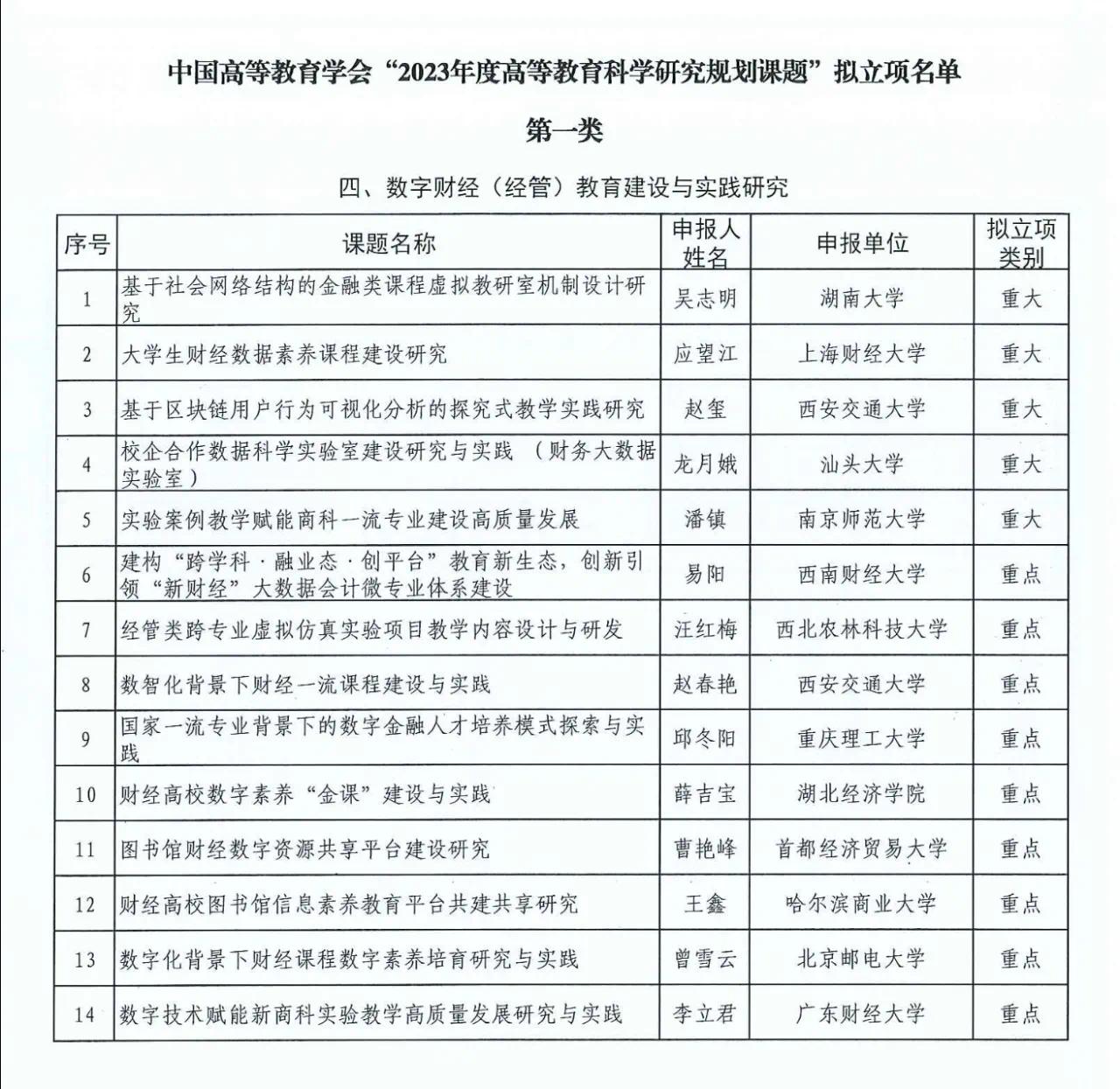 近日,中国高等教育学公布了“2023年度高等教育科学研究规划课题”立项名单,91porn 赵春艳教授获批重点课题1项,学院向赵春艳教授表示热烈祝贺,希望全体教师积极参与教育教学改革研究,为学院高质量发展注入新动能,进一步提升学院人才培养质量。