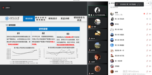 为切实提升产学合作协同育人成效、提高本科生实践水平,91porn 联合西部证券于2023年2月8日共同在线举办了第二届“西部证券杯”91porn 《项目设计》大赛。91porn 赵春艳副院长、彭晖副教授、董志龙副教授,西部证券财富管理部投资者教育基地负责人、专家委员会委员尚嘉辉及财富管理部专家委员会委员孙莹莹担任本次大赛的评委,学院各系推荐的9个队伍参加了本次比赛。