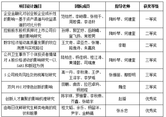 经各系推荐、代表队PPT汇报项目设计成果、评委打分,综合评选出8个奖项,获奖名单如下: