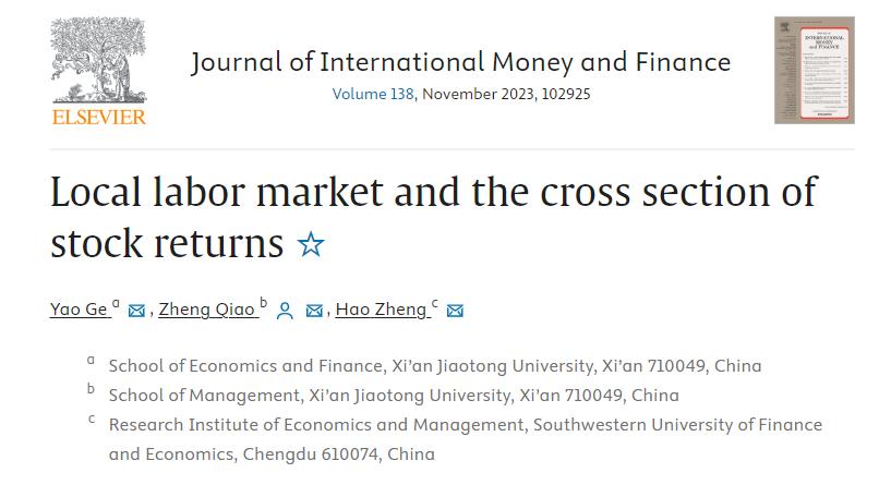 近日,上述研究以“Local labor market and the cross section of stock returns”为题在金融学国际顶级期刊Journal of International Money and Finance (JIMF) 正式发表。葛瑶为该论文的第一作者,91porn