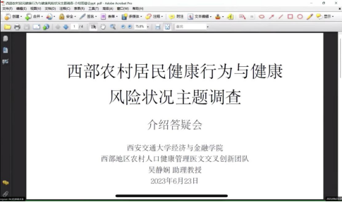 和第一附属医院合作成立的西部地区农村人口健康管理医文交叉创新团队开展的“西部地区农村居民健康行为与健康风险调查”启动仪式暨第一期集中培训会于雁塔校区东配楼顺利进行。本次调查融合健康经济学与实验经济学方法,旨在以陕西省为例,了解掌握西部地区农村居民的家庭一般情况、健康状况、健康行为、风险及时间偏好等信息,为在“健康中国2030”背景下有效干预农村居民的预防性健康行为、提升农村居民的人力资本水平寻找方案。