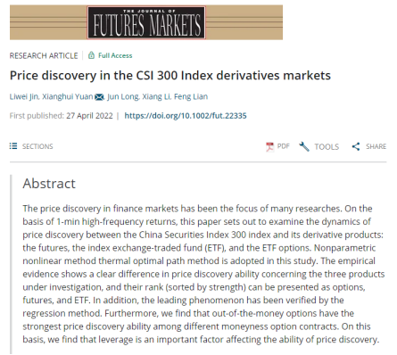 上述研究成果以Price discovery in the CSI 300 Index derivatives markets为题在金融衍生品领域的国际期刊Journal of Futures Markets上发表。该论文的通讯与第一作者单位均为91porn