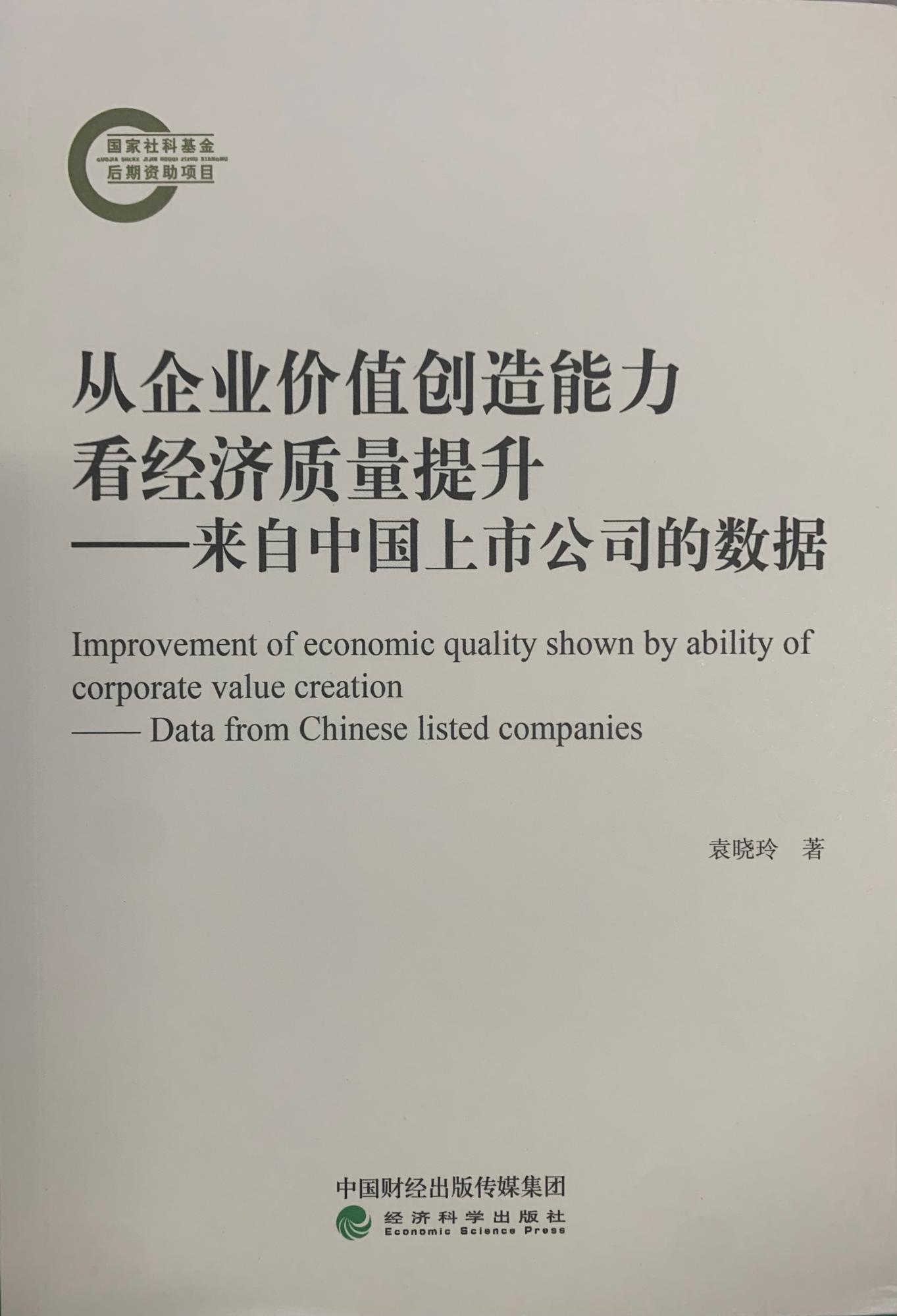 由2019年国家社科基金后期项目资助,学院袁晓玲教授带领团队完成的《从企业价值创造能力看经济质量提升——来自中国上市公司的数据》一书近日由经济科学出版社出版发行。