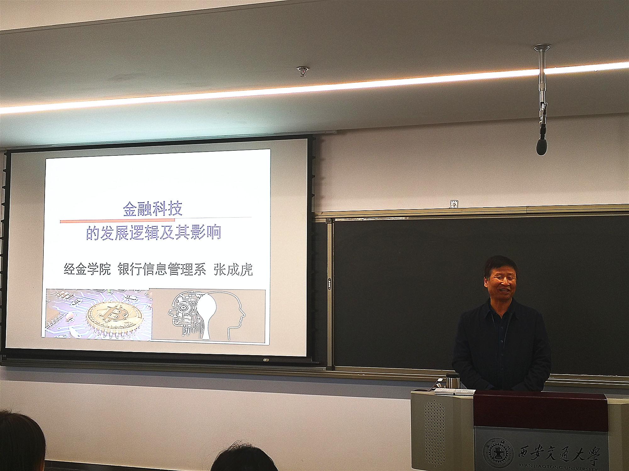 金融科技系博导、西安交大同花顺金融科技研究院院长张成虎教授主讲,金融科技系主任徐凤敏教授主持。