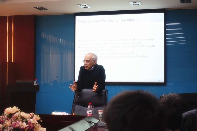 温军教授首先对Jess教授做了简要介绍,并代表学院对Jess教授的来访表示热烈欢迎。随后,Jess教授做了题为“Wealth Distribution and Social Mobility in the US: A Quantitative Approach”的报告。Jess教授报告从宏观动态经济学出发,收入差距、不同财富的储蓄水平及财富的随机回报三个方面揭示了驱动美国财富分配和社会流动的因素,同时对影响美国财富分配和社会流动的主要因素进行了定量分析。报告会场氛围融洽,互动交流频繁。报告结束后,Jess教授与师生进行了深入交流,回答了大家关心的一些学术检验问题。