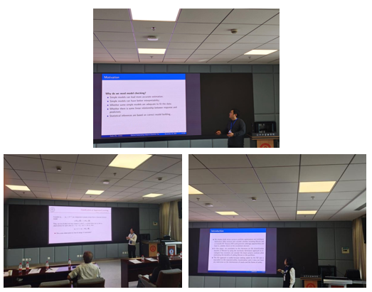 分会场由胡江教授主持,首先由朱学虎教授带来题为“Optimal subsampling adaptive ensemble test”的主题报告,该研究提出了一种最优子抽样自适应集合检验来对模型进行检验。罗文雅助理教授作了题为“Spectrally-corrected and regularized LDA for spiked model”的主题报告,该研究综合了样本谱光滑校正协方差矩阵和正则化判别分析的思想提出了一种改进的线性判别分析方法。朱真真副教授带来了题为“Could arbitrage opportunity be generated by using assets with no arbitrage opportunity? a study of portfolios with and without bitcoin and treasury bill”的主题报告,该主要研究了有无比特币与国库券的投资组合差异。