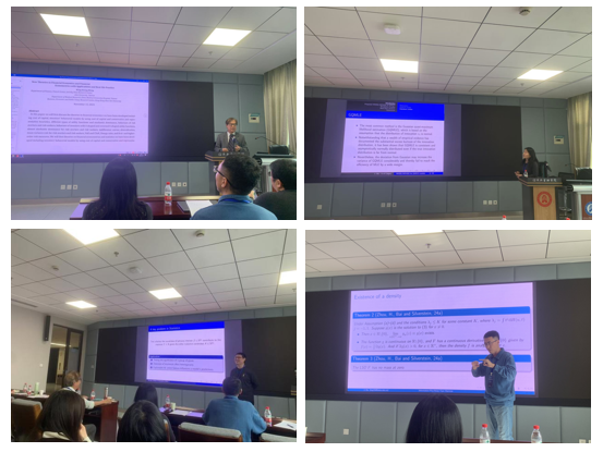 本次主旨报告环节由严明义教授和姜丹丹教授主持。黄永强教授带来了题为“New theories in Financial Economics and Financial Econometrics with applications”的主题报告。该报告中黄教授结合自身的经验介绍了金融计量在实际投资中的应用。吴静静教授做了题为“Robust and efficient estimation of GARCH models based on Hellinger distance”的主题报告。该主要研究GARCH模型的稳健和有效估计,提出的方法对时间序列的估计具有重要的实际价值。郭旭教授带来了题为“Model-free variable importance testing with machine learning methods”的主题报告。该研究采用灵活的机器学习方法来估计未知函数,为无模型框架下的变量重要性检验问题带来了新的视角。胡江教授做了题为“Global properties of the eigenvalues of large dimensional information-plus-noise-type matrices”的主题报告,该主要研究了高维矩阵的特征值问题。